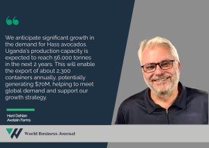 World Business Journal talks to Hani Dahlan, founder and CEO of Avotein Farms, about the company’s strategic operations in avocado farming, its successful sea exports of Hass avocados to Europe, substantial investments in cold chain logistics, and the growing investment opportunities in Uganda’s Hass avocado cultivation, fuelled by increasing global demand.